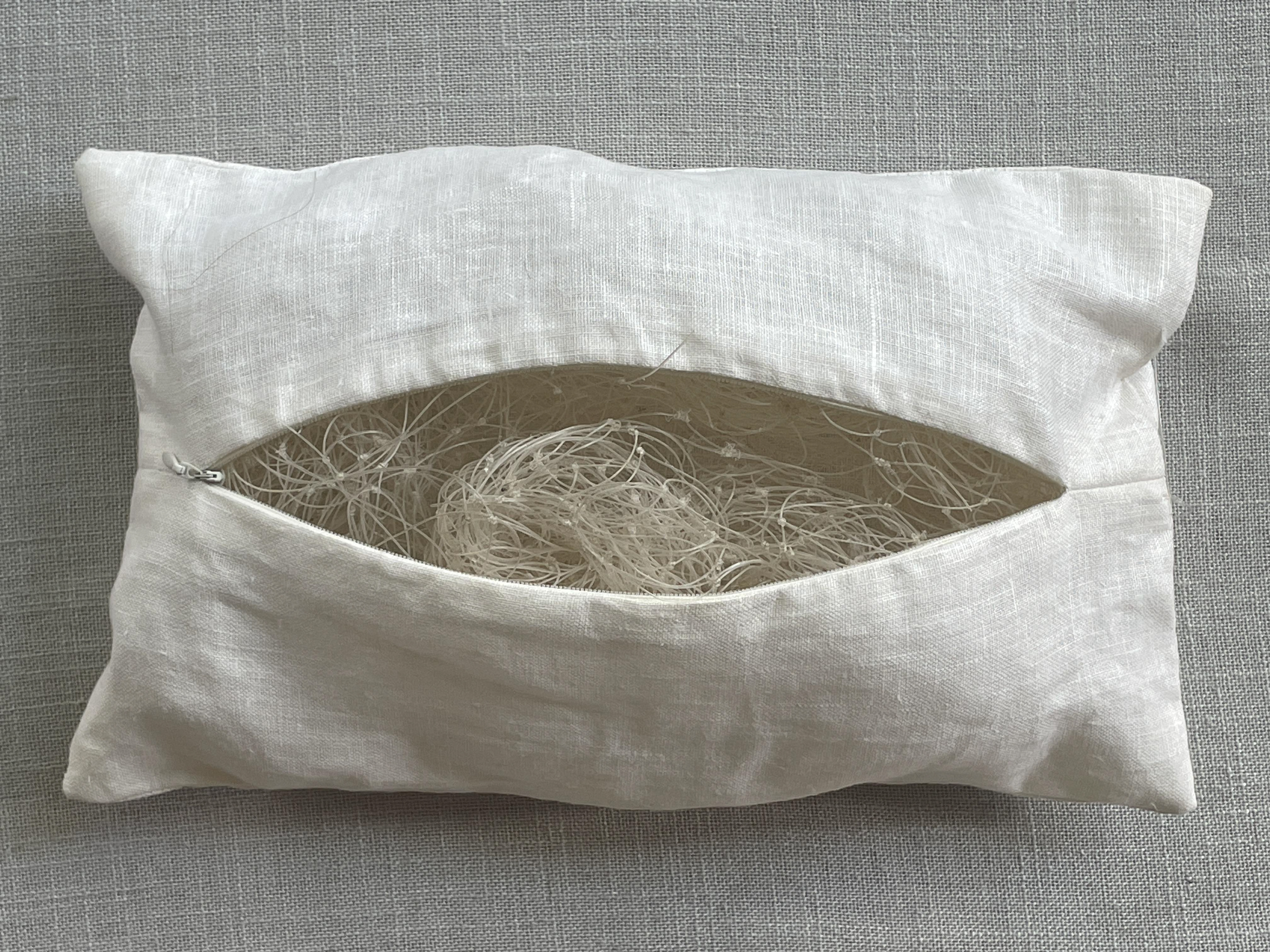 Fronha com enchimento de rede de pesca 18 x 30 x 10cm